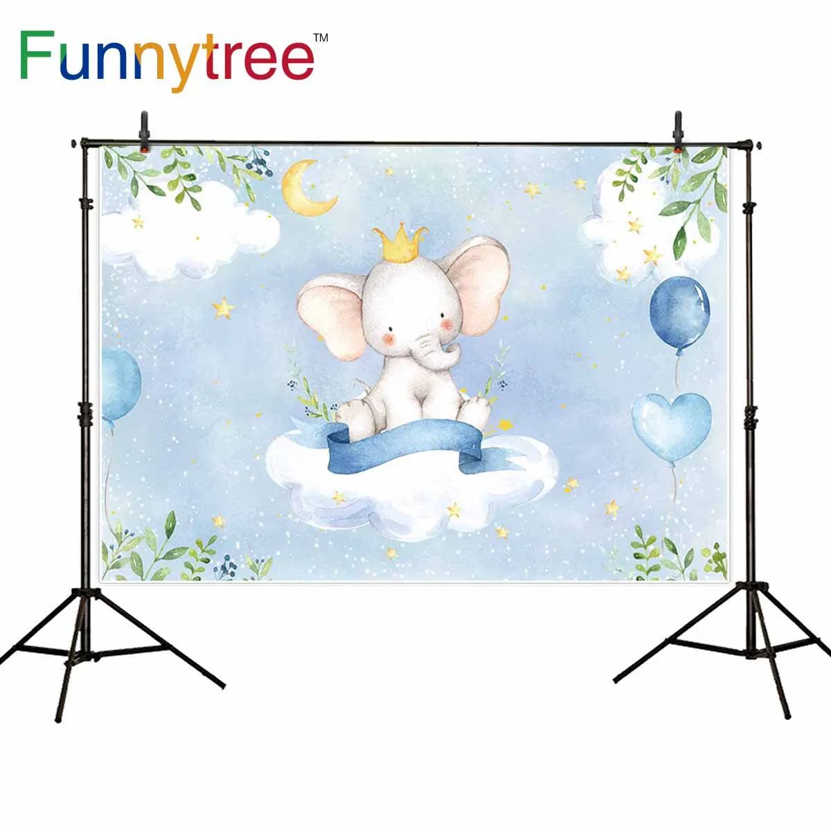 Funnytree banner elephant cloud leaves ballons moon stars newborn baby shower children birthday background photophone photozone