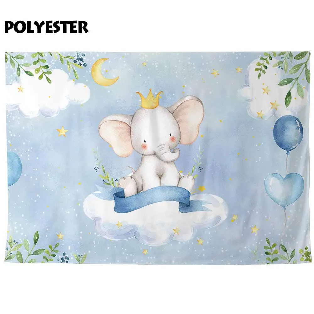 | Funnytree banner elephant cloud leaves ballons moon stars newborn baby shower children birthday background photophone photozone |