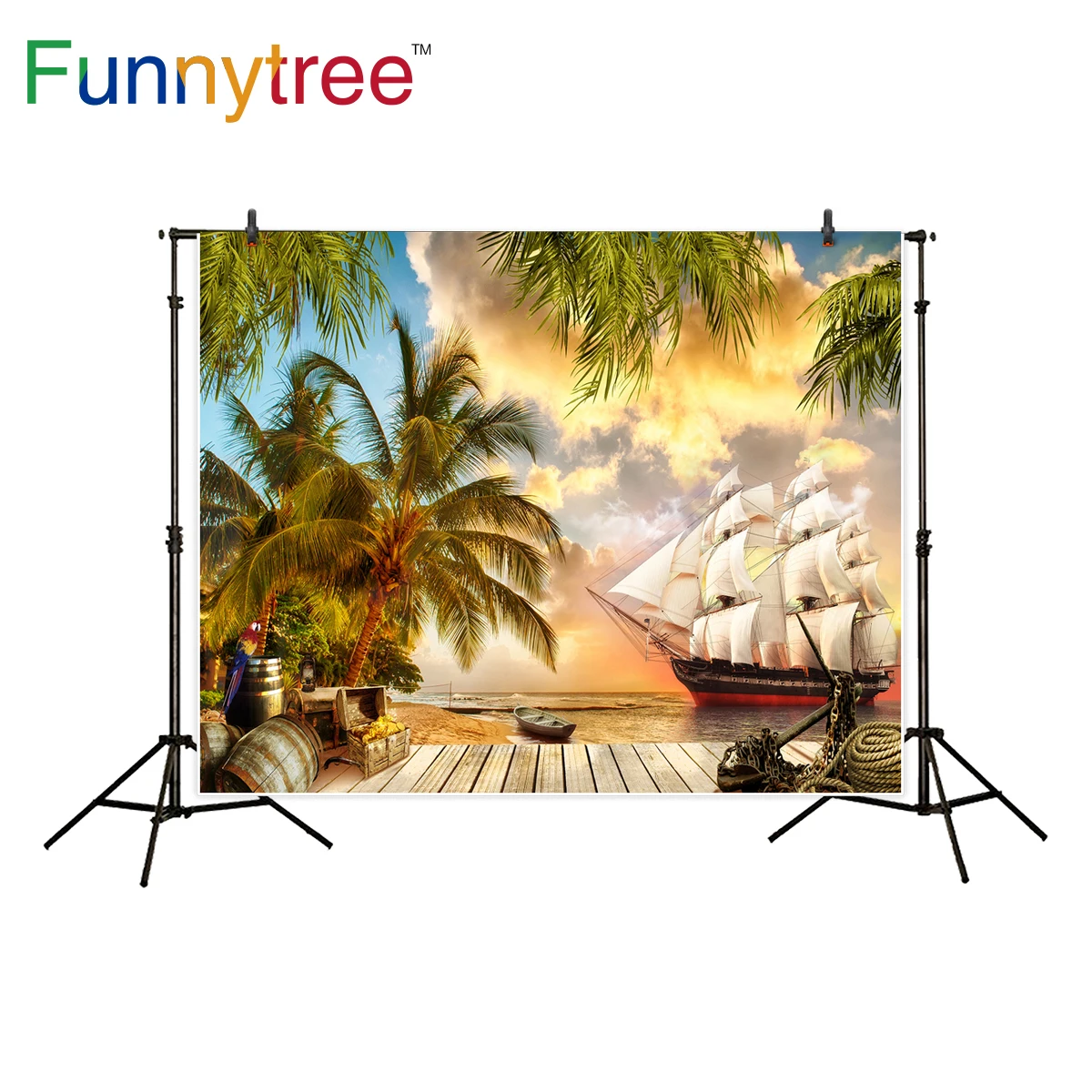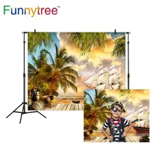 Funnytree adventure photography pirate background boat Coconut Tree summer ship wood backdrop photocall photozone photo studio